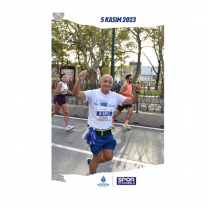 Yarış: İstanbul maratonu gibi büyük organizasyonlarda katılımcı çok olunca yarış başlamadan insan yorulabilir (2022 yılı 15 km yarışında öyle olmuştum), bu nedenle başlangıç yerine en kolay nasıl gidebilirim diye araştırma yaptım. Yarışa katılacak bir arkadaşımın oğlu beni de alarak en yakın noktaya bıraktı, gerçi ondan sonra da yaklaşık 15-20 dakika yürüdük ama o da ısınma oldu. Yarış başladı, ben ilk 30-32 km koşup kalanını yürüyüş-koşu şeklinde planlamıştım ama 26. Km yoruldum, biraz yürüdüm, sonra aralıklarla yürüyerek yarışı bitirdim, kalan 16 km’nin 7 km’sini koşup, 9 km’sini yürüdüm. 39. Km de artık koşmasam bile yarışı 6 saat 20 dakikanın altında bitireceğim belli olunca koşmayı bıraktım, yürüdüm, kendimi daha fazla zorlamamın anlamı yoktu. Yarışı da 6 saat 13 dakikada bitirdim.